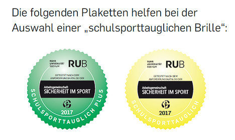 Alle Schulsporttauglichen Brillen, natürlich auch bei uns erhältlich, müssen hiermit gekennzeichnet werden.