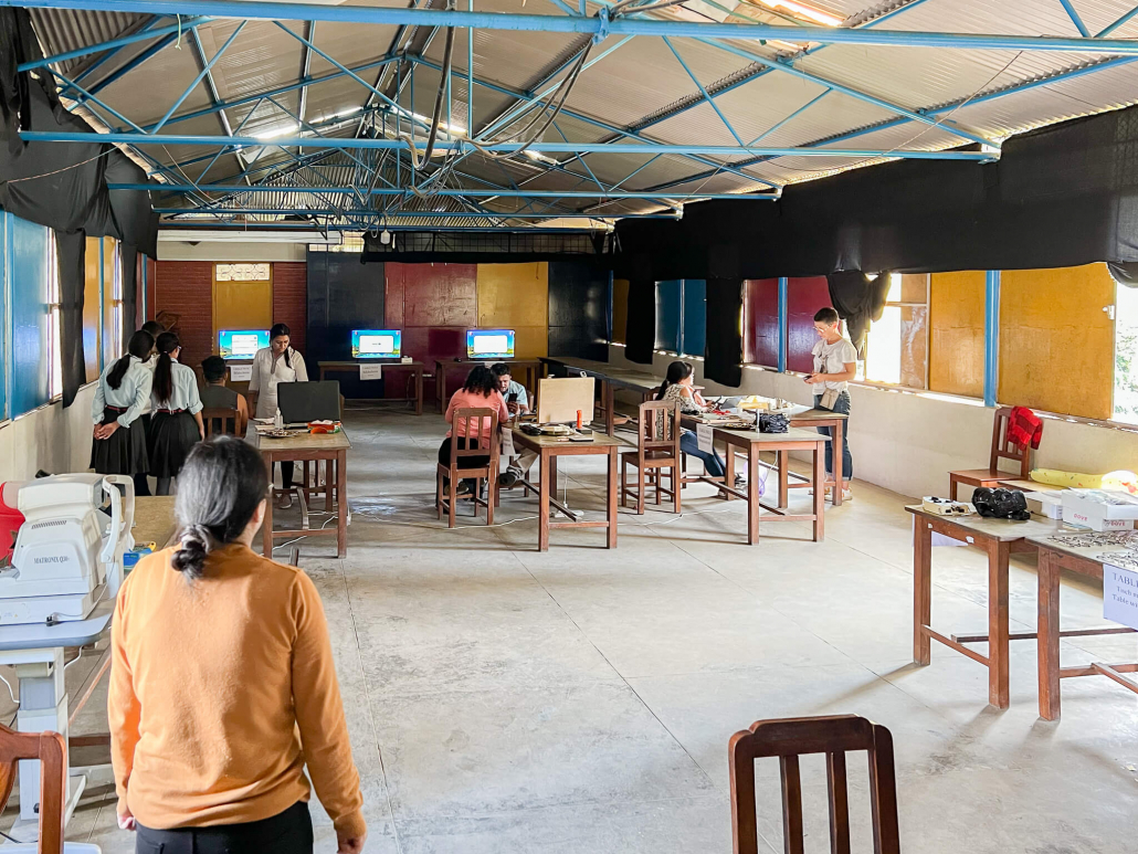 Die Schule liegt zu Fuß ca. 10 Minuten vom Guesthouse entfernt. Am Montagmorgen ging es dann mit dem Eye Camp los. Nach technischen Problemen, die aber zum Glück schnell behoben werden konnten, starten wir mit unseren Tests. Das Eye-Camp bestand aus 4 Stationen: