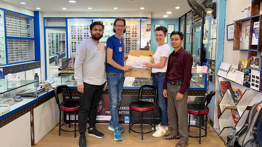 Einige Brillenfassungen haben wir aus Deutschland mitgebracht. Jedes Kind darf sich selbst eine Brille aussuchen. Die Brille soll dem Kind gefallen. Auch in Nepal sind gerade die Jugendlichen nicht wirklich wild darauf, Brille zu tragen. Trotzdem ist es für die Entwicklung sehr wichtig. Daher ist es nach unserer Auffassung wichtig, dass die Brillen den Kindern gefallen, damit sie auch genutzt und geschätzt werden. Auch bei den Brillengläsern konnten wir ein höheres Qualitätsniveau bekommen, da der Optiker sich inzwischen sehr bemüht und gut kooperiert.
