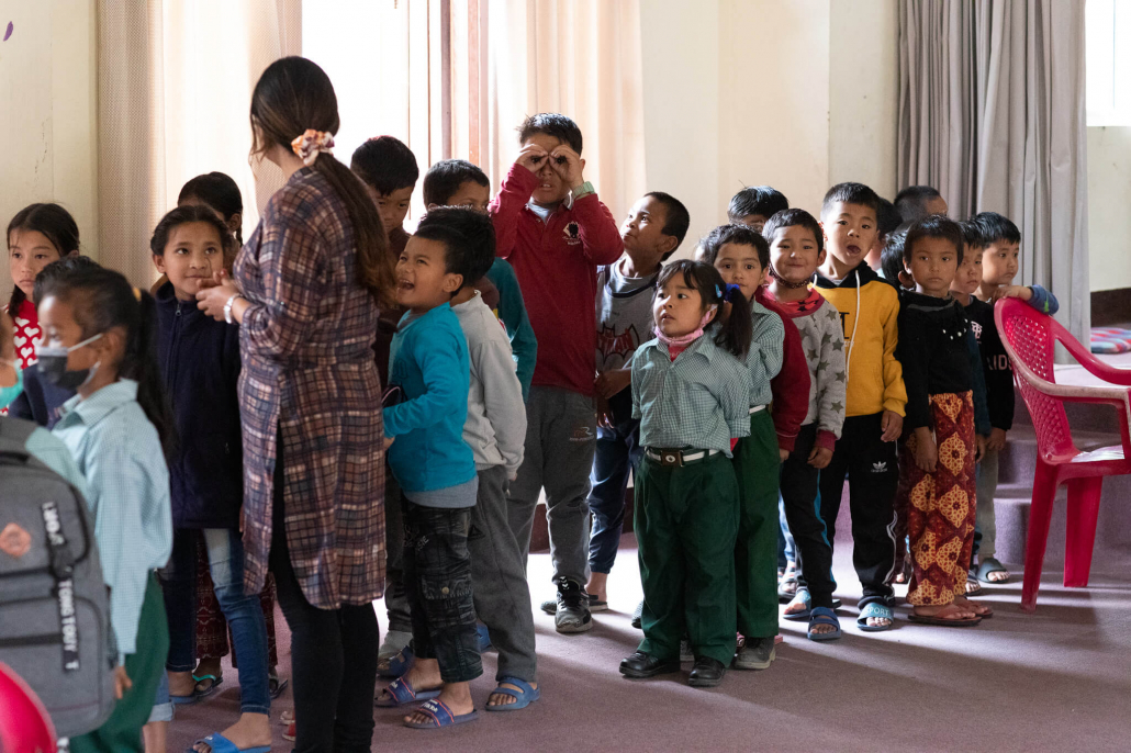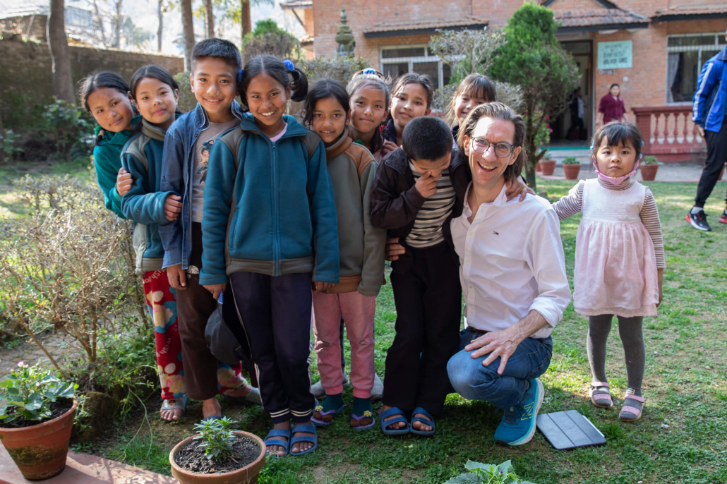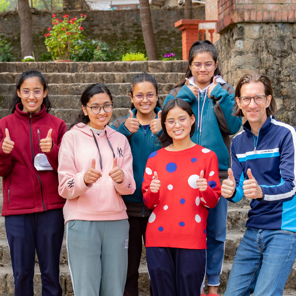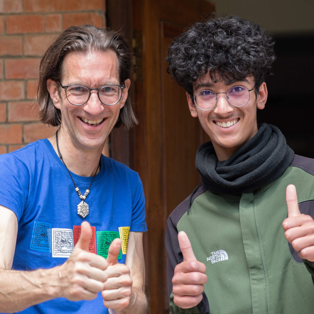 Vom Flughafen ging es direkt an die Schule. Der Schulleiter Pramod Thapaliya mit dem ganzen Team haben uns herzlich empfangen. Wir konnten wieder an der Schule übernachten und mit den Kindern den Alltag erleben, was uns sehr angenehm ist, da wir so einen guten Einblick in die Abläufe und Gegebenheiten der Schule bekommen. Das Wiedersehen mit den vielen glücklichen Kindern war nach so langer Zeit (letzter Besuch 10-2019) besonders schön.